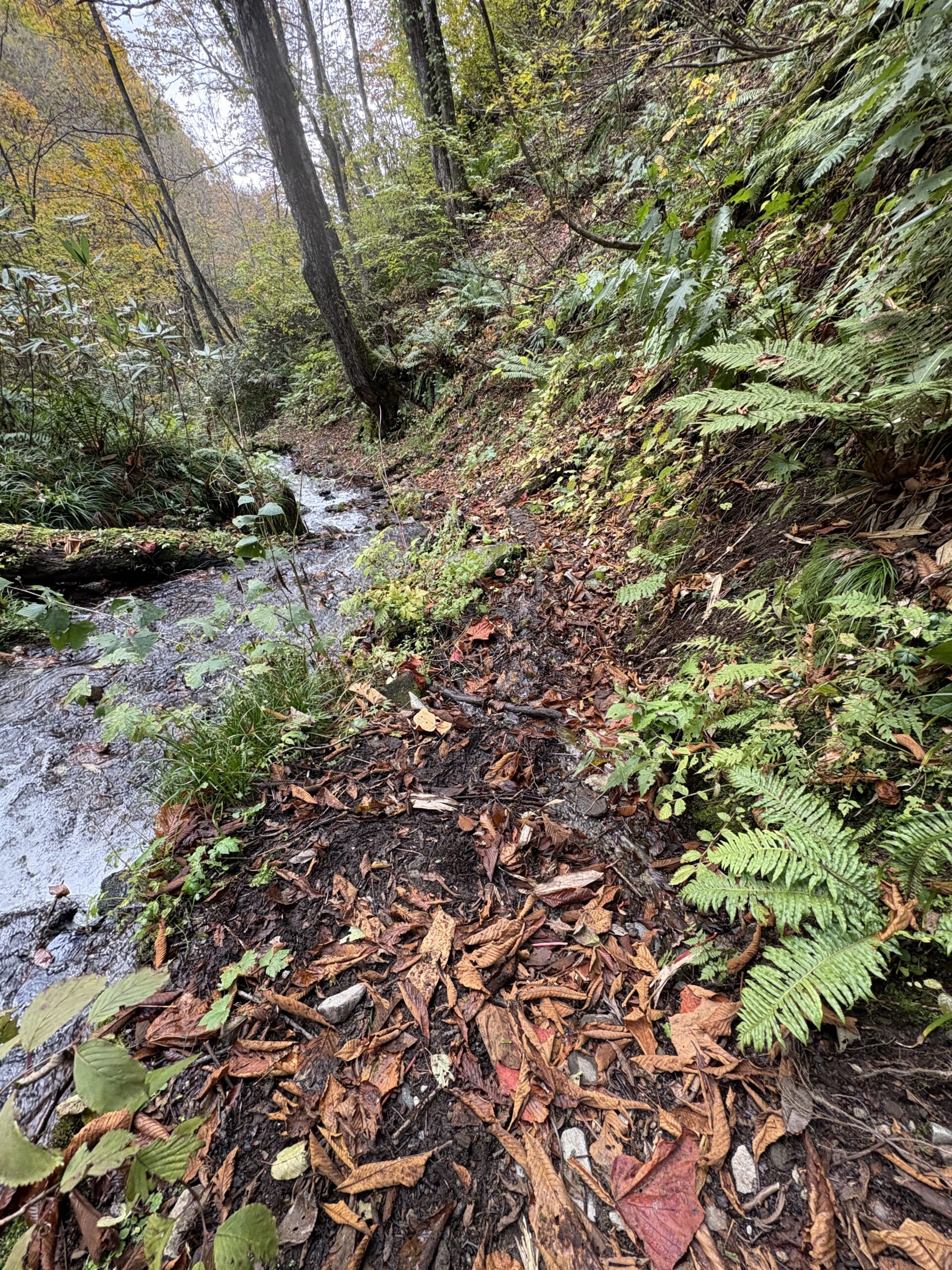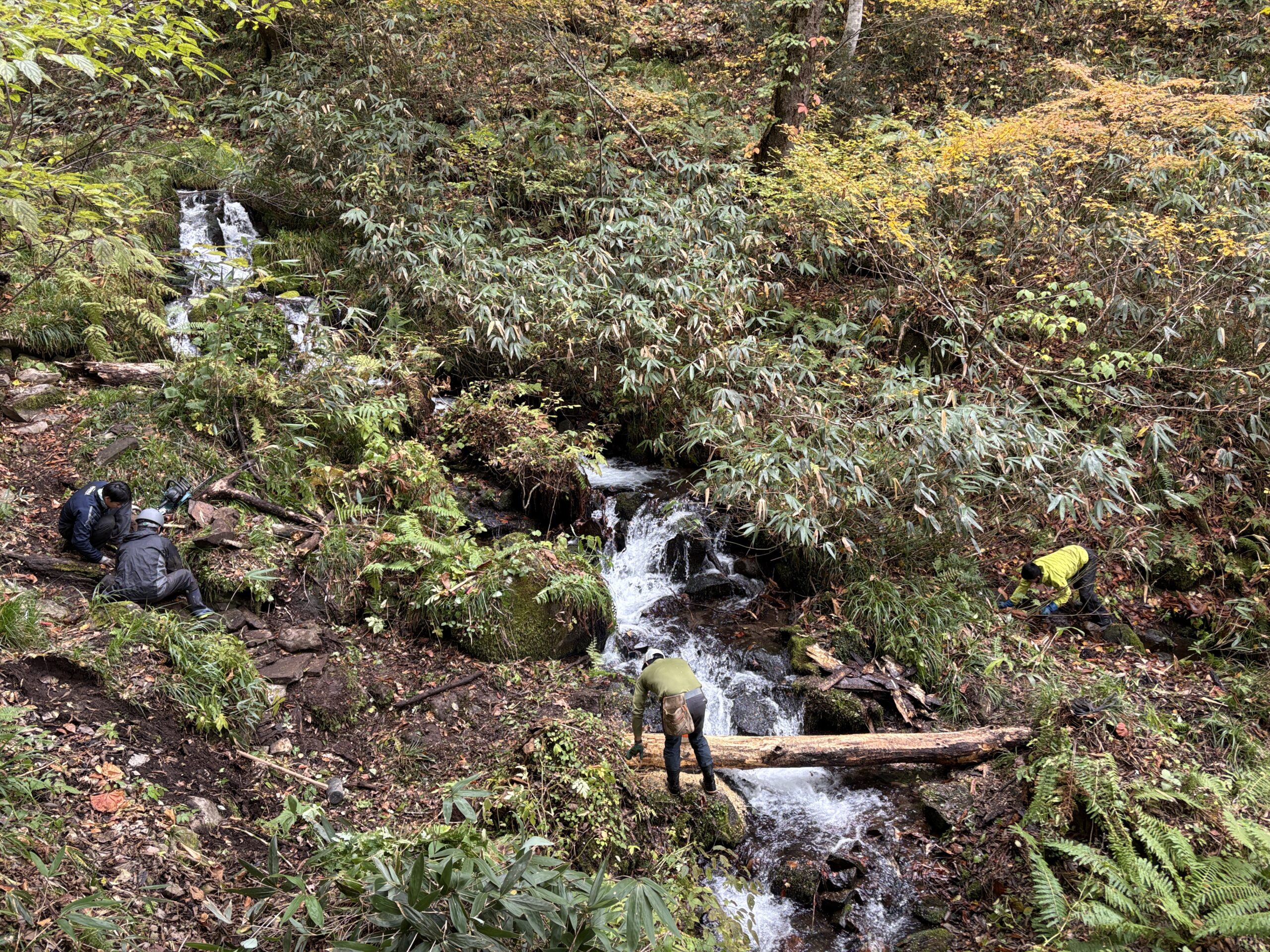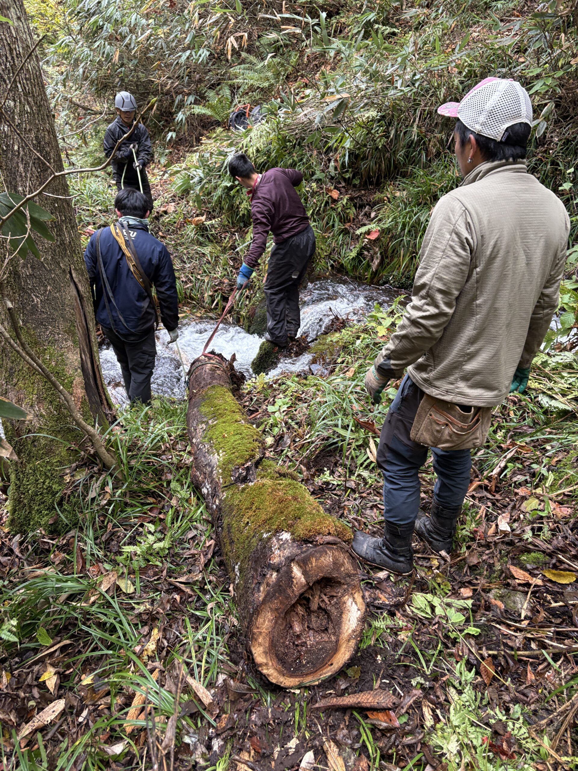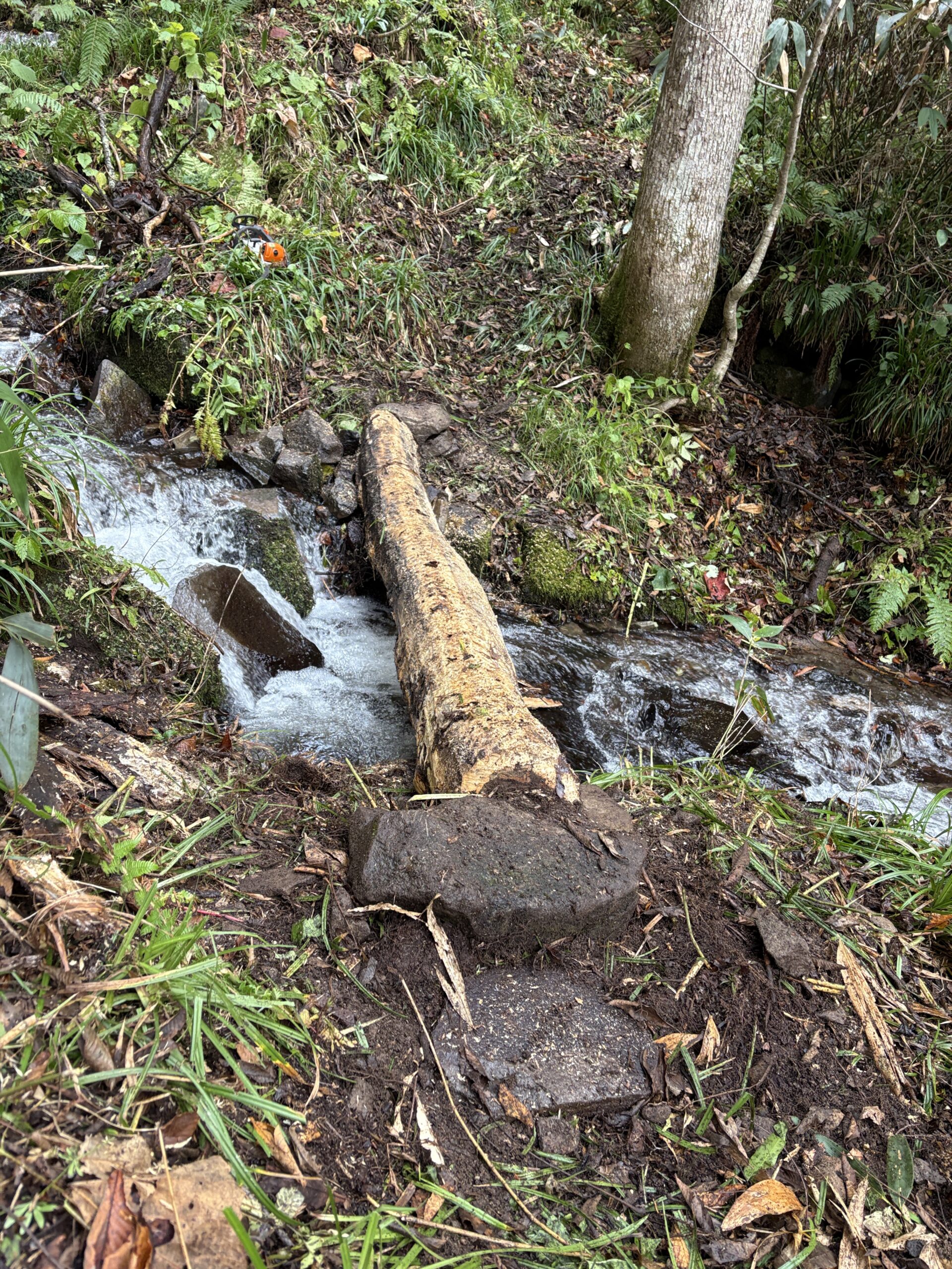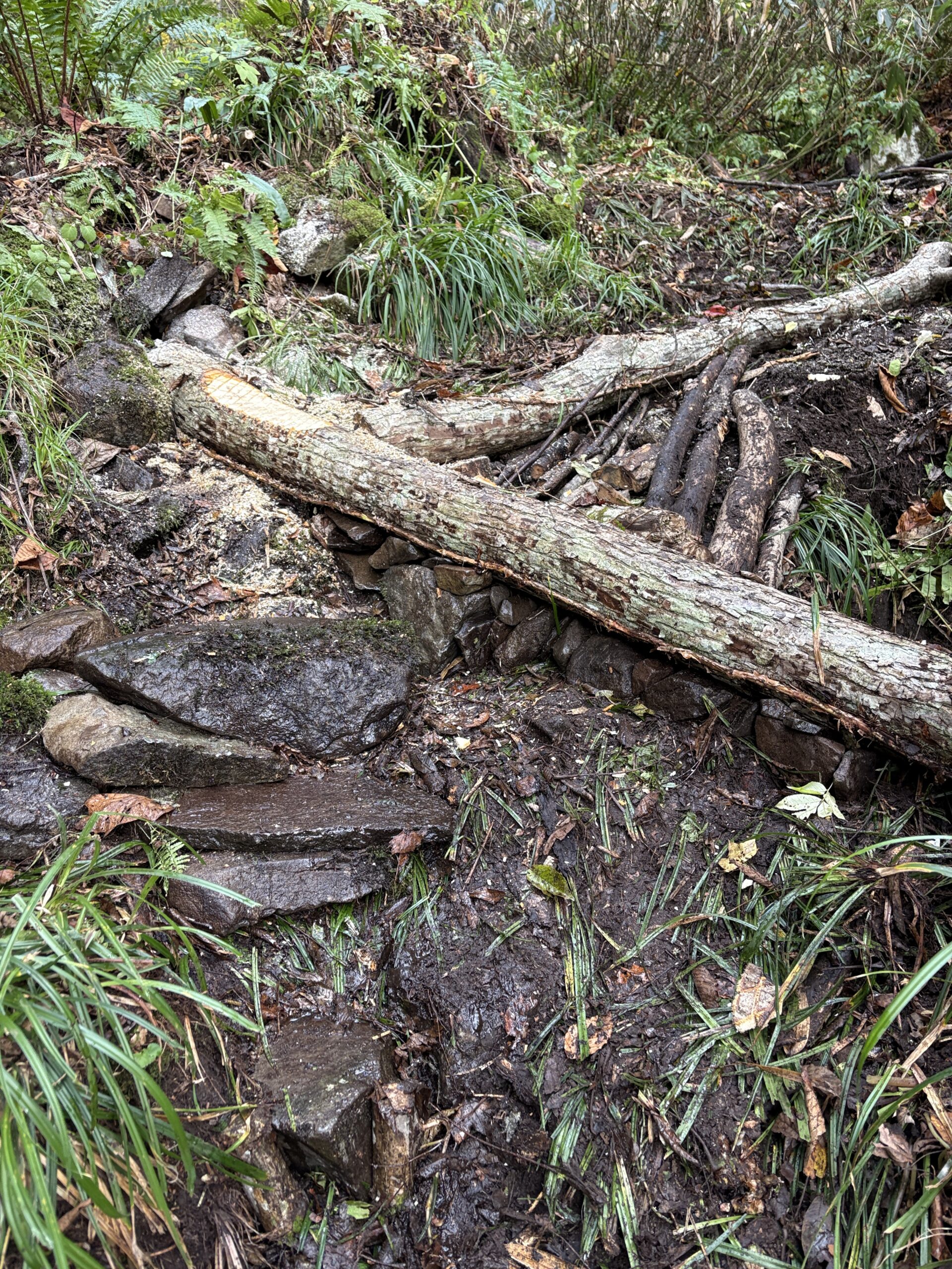 高巻きしていた箇所の登山道を変更し倒木を使った橋を設置した